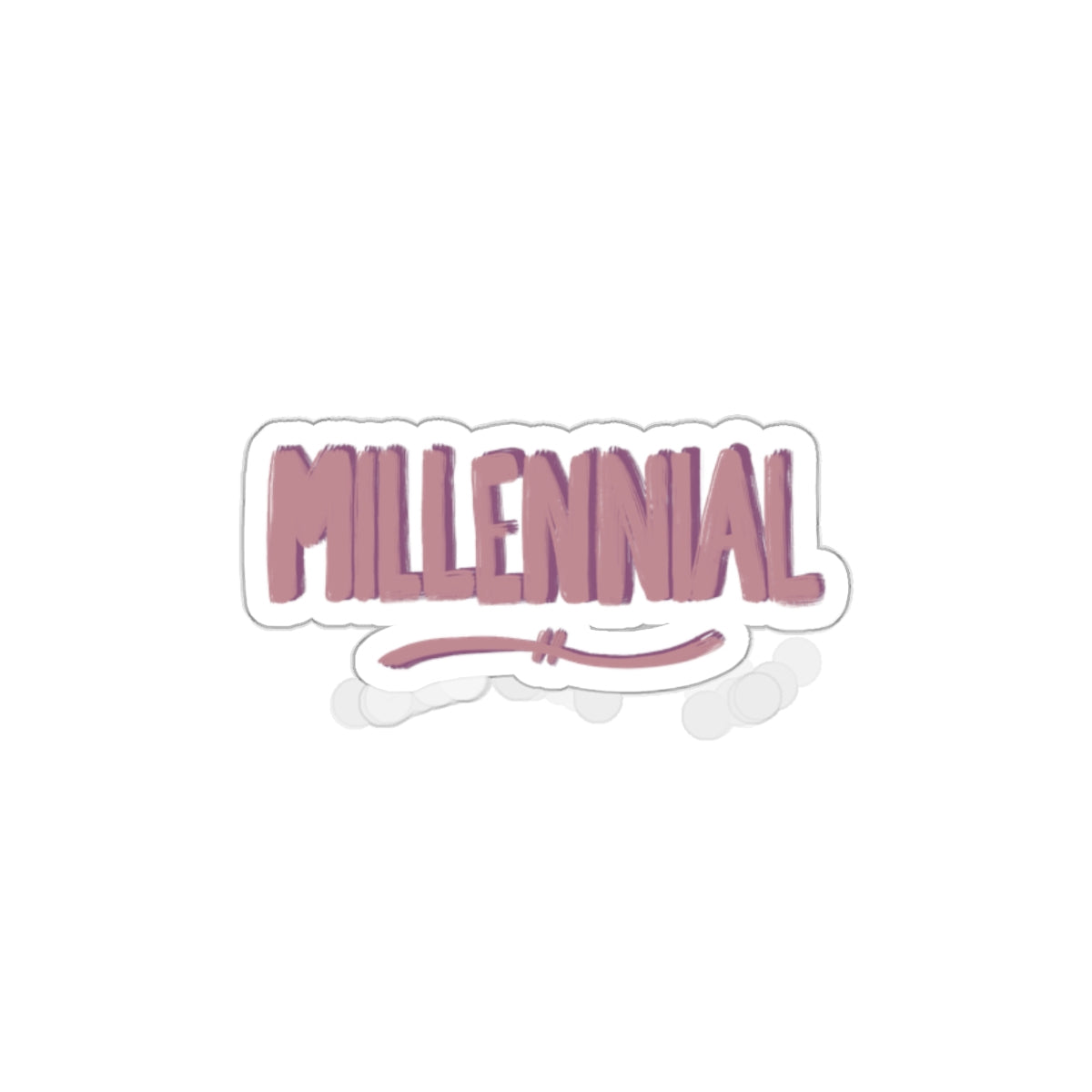 A millennial sticker in millennial pink. Perfect for decorating laptops, water bottles, notebooks, and more. This trendy sticker adds a touch of fun and personality to any surface, making it ideal for those approaching middle age. Great for celebrating milestones and achievements.